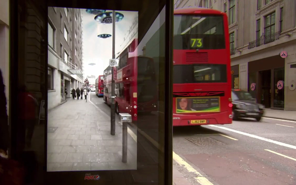 數(shù)字戶外,創(chuàng)意無(wú)限。比方說(shuō),百事在倫敦的候車亭屏幕上做過(guò)的AR廣告,讓等車的人可以看到UFO、飛人、老虎等動(dòng)態(tài)畫(huà)面,看起來(lái)就像是真的一樣,如果事先沒(méi)有準(zhǔn)備的話,人可能會(huì)被嚇到。