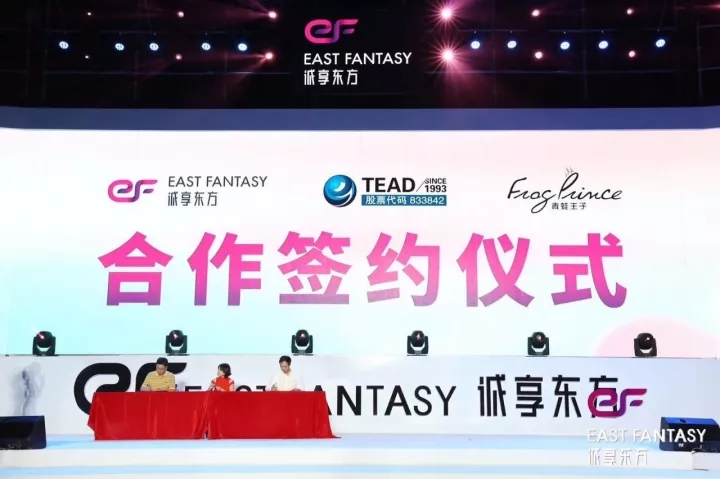 2017年10月21日,在誠享東方掛牌慶典晚會上,天藝傳媒攜手知名美妝移動電商——誠享東方,及國內(nèi)領(lǐng)先日化企業(yè)——青蛙王子在廈門音樂島正式舉行簽約儀式。三方將在未來共同推出以“阿巴兔”為品牌形象的兒童護(hù)理系列產(chǎn)品。